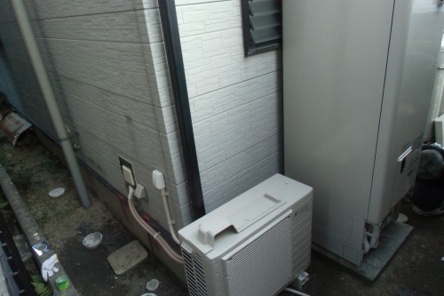 基礎工事後の再訪にて、天候味方に設置作業です。