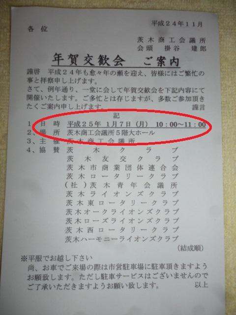 ご挨拶など, 交流会, 代表取締役, 専務取締役, 時事, 茨木商工会議所加盟企業, 賀正 2013年1月7日 ![]()