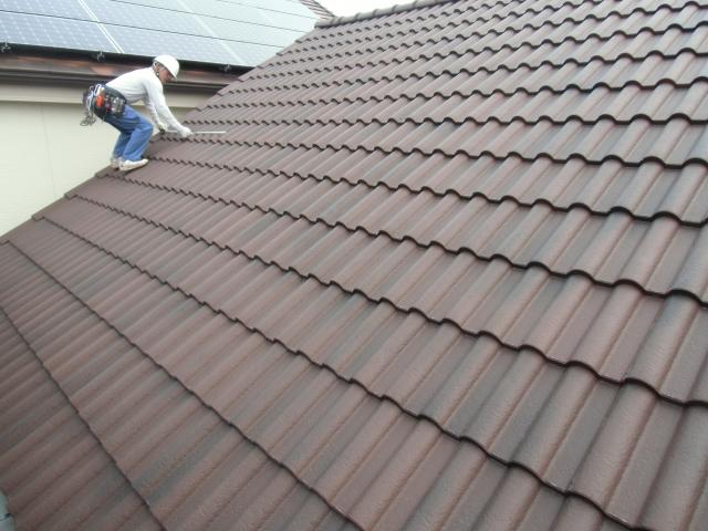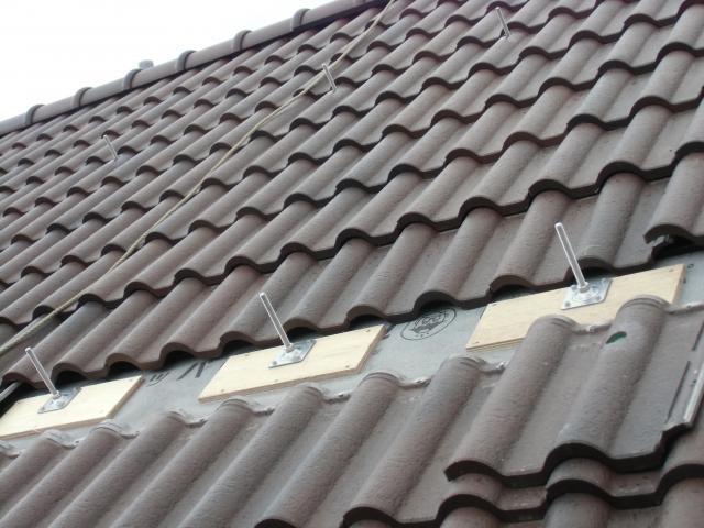 瓦を被せます。アンカーのピンだけが、瓦の下から出てくる状態です |
