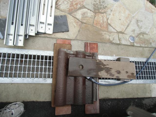 最初に剥いだ瓦ですが、アンカーのピンがくる箇所の瓦に穴をあけます。