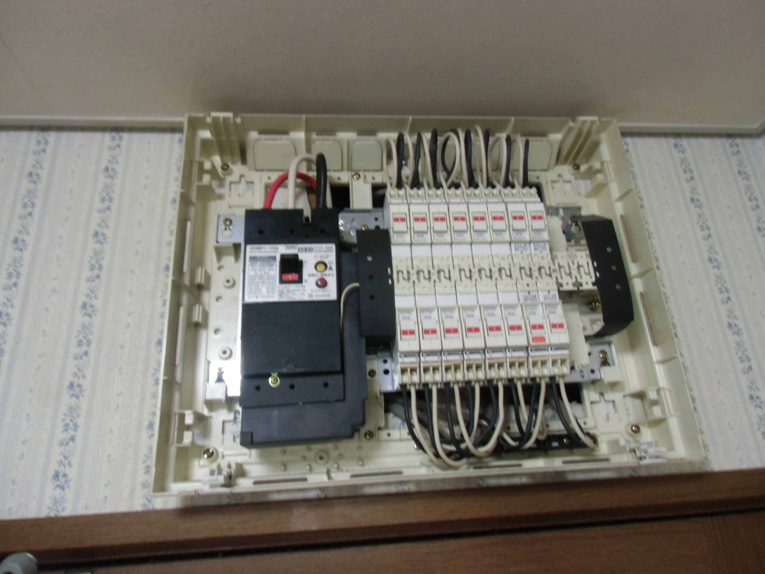 配電盤内に200v追設作業 養生加工で、配線追設作業開始