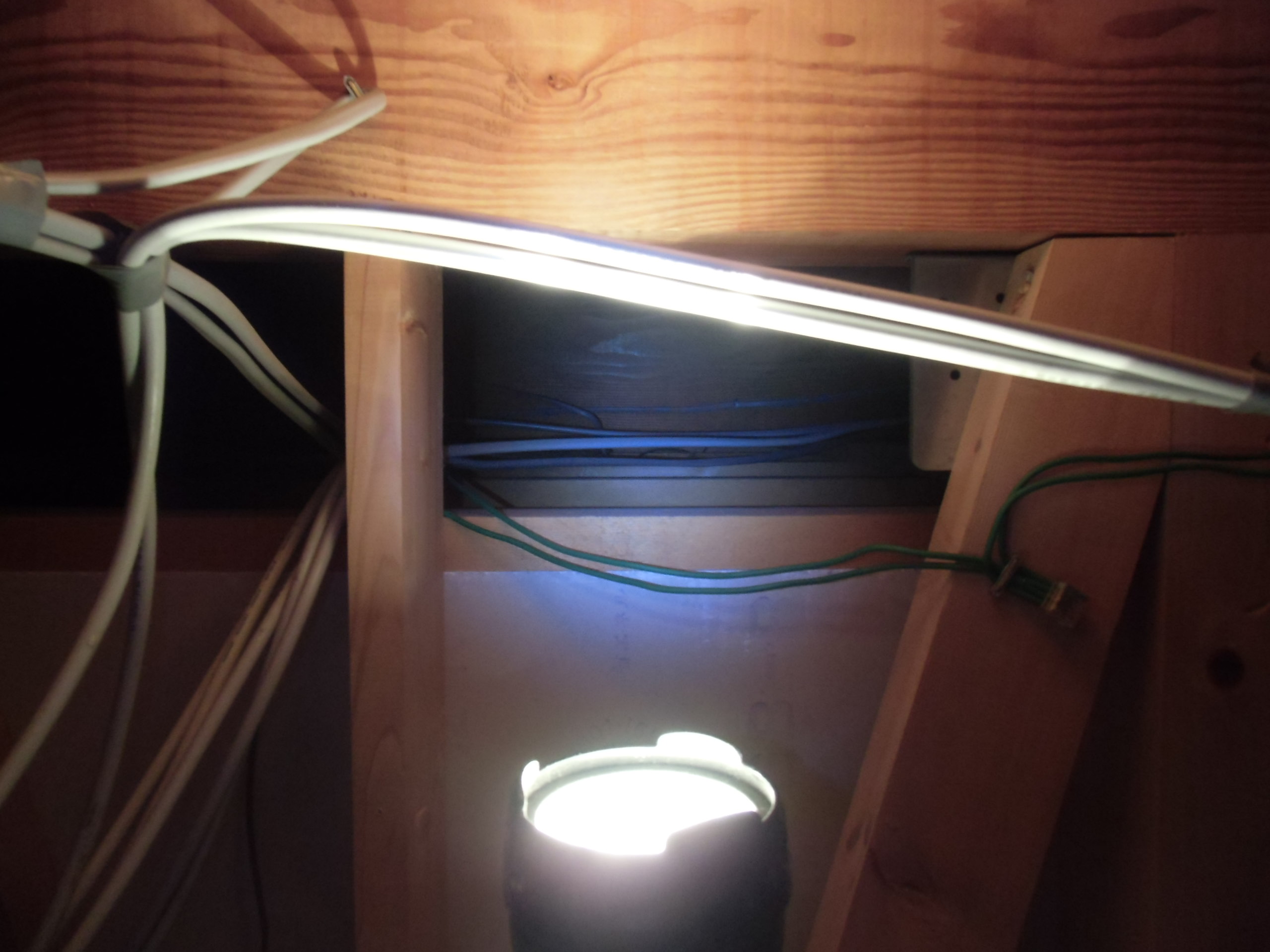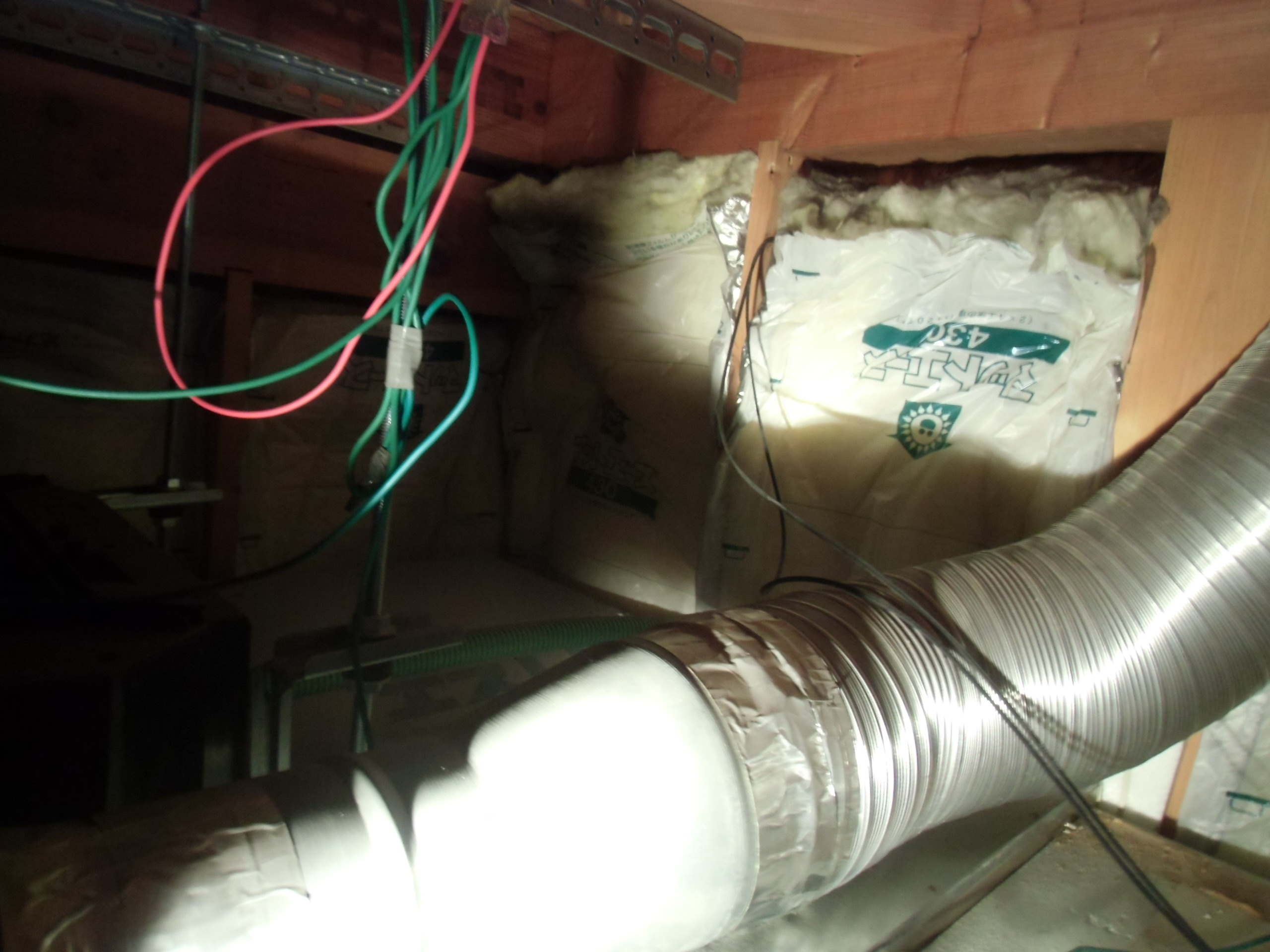 天井内部の配線作業