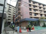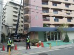 12日(日)本施工に備え養生シート等足場設置作業を行います。