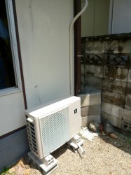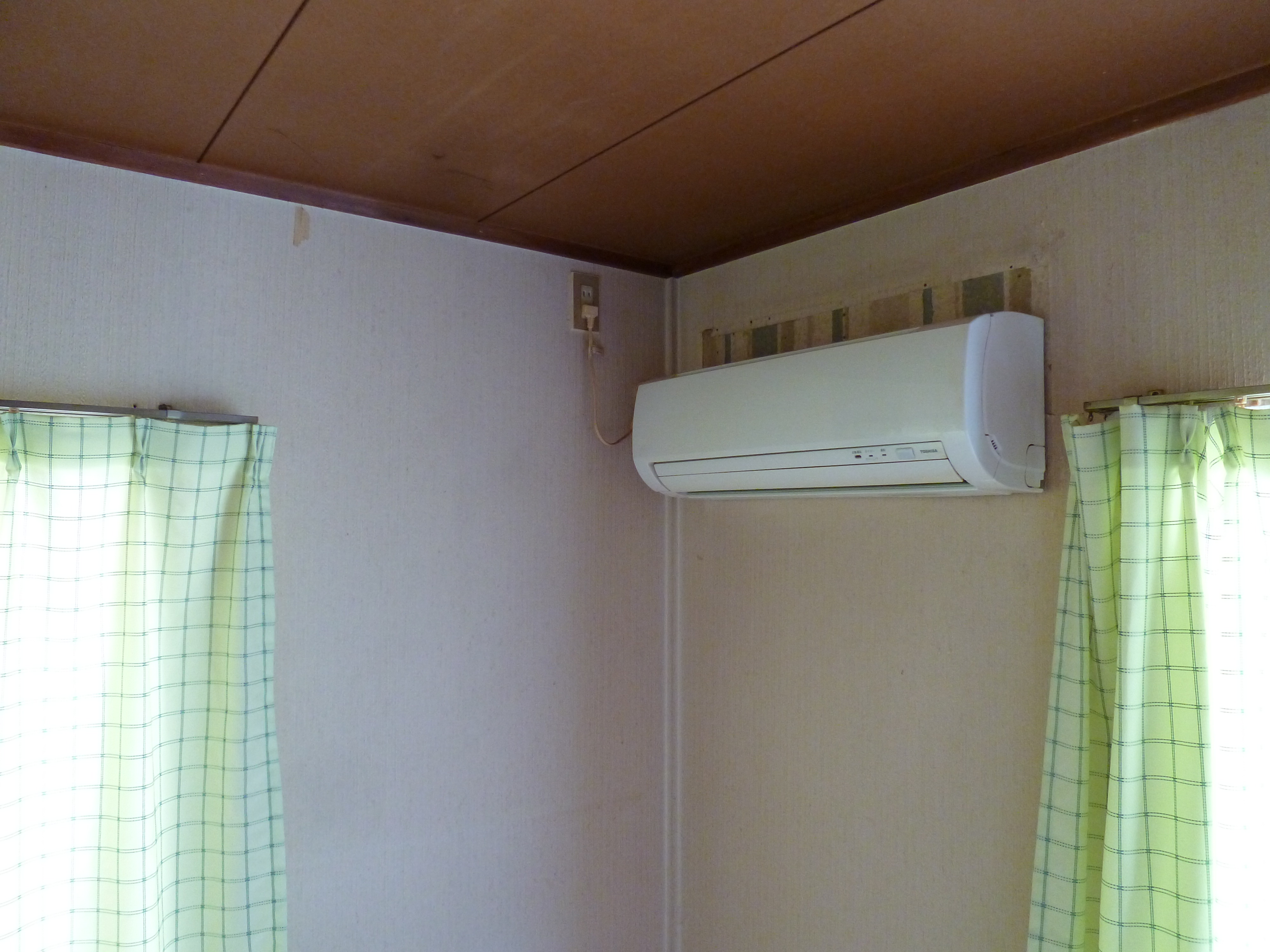 旧エアコンが設置してある場所は、隣部屋まで、気流がうまく流れないので向きを替えて設置します。