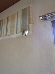 旧エアコン壁穴には、筒等も何もなくエアコンパイプがはいっていたので新エアコン壁穴には、エアコン配管用貫通スリーブをいれます。