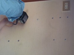 壁内は補強になるコンパネ材が入ってないのでボード用アンカーでたくさん補強してエアコン取り付け板をつけます。