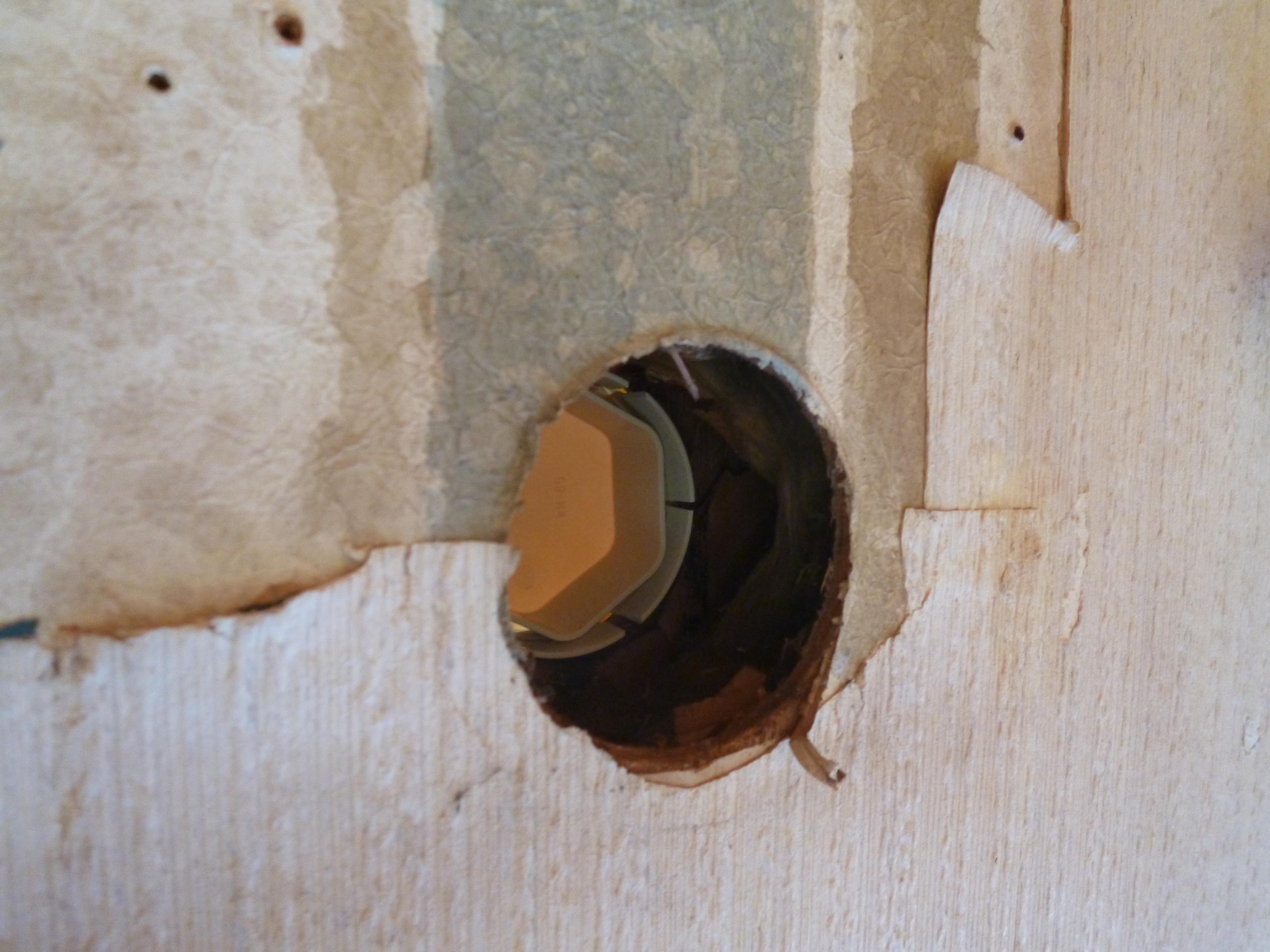(筒が入ってない。→小動物が天井から進入して、室内エアコン裏側で住み付く。実際にありました。)
