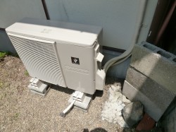 室外機 下側地面平らにしないで、足元に台座があるが、そのまま設置。