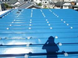 施工中:ハゼの折半屋根ですので、日栄インテック製の掴み金具を使用