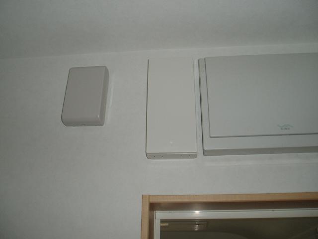 pb110003.JPG 左から、エコガイドTV用送信ユニット・既設分電盤・ソーラー用ブレーカーです。