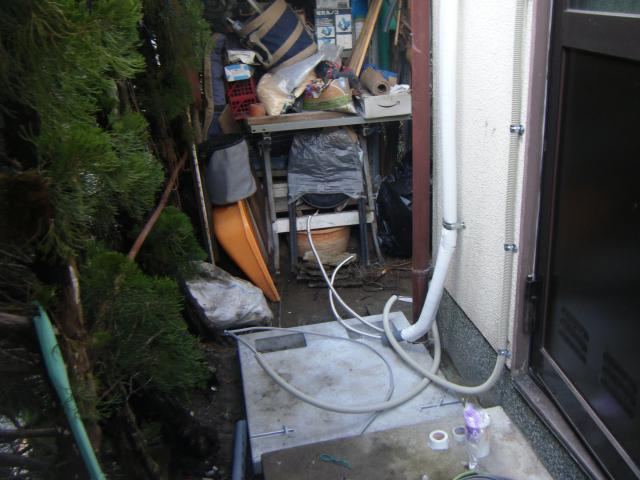 この作業のついでに、オール電化工事(コンロ取り換え、給湯器取り換え)際の先行してできる電源配線等をやっておきます。それをしておくと、取り換え工事(オール電化工事)の日は少しでも早くお客さんにお湯を使ってもらえます。