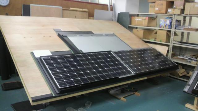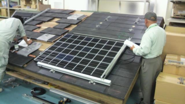パネル取り付け中、足場がわるいので慎重にしかもパネルを傷つけずに。