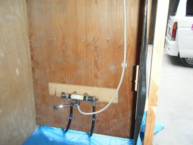 サーモスタット付シャワー水栓を取り付け完了です。