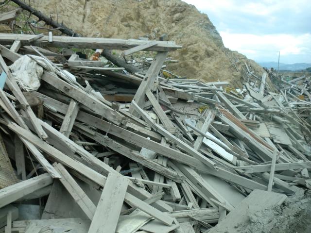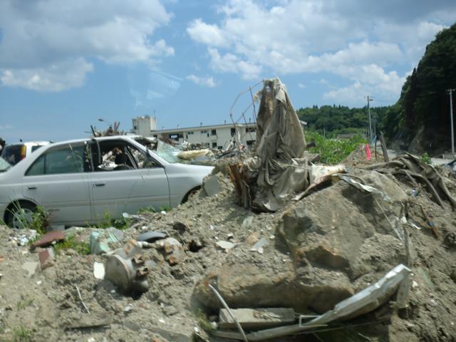 海岸沿いや陸前高田市の中心部が全く何も残っていない。目に入ってくる光景は大量のがれきの山だけです。正直、TVなどである程度はわかっているつもりでしたが『考えれない状況でした』表現のしようがないです。ただただ唖然とするばかり、、、