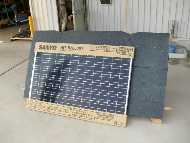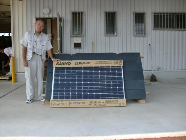 右下が完成したスレート屋根にサンヨーHIT205Wパネルと一緒に撮ったきわさんです。