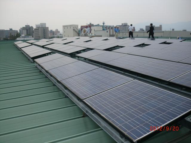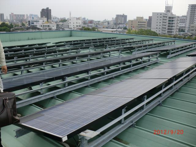 屋根には様々なメーカーのパネルが設置されています。