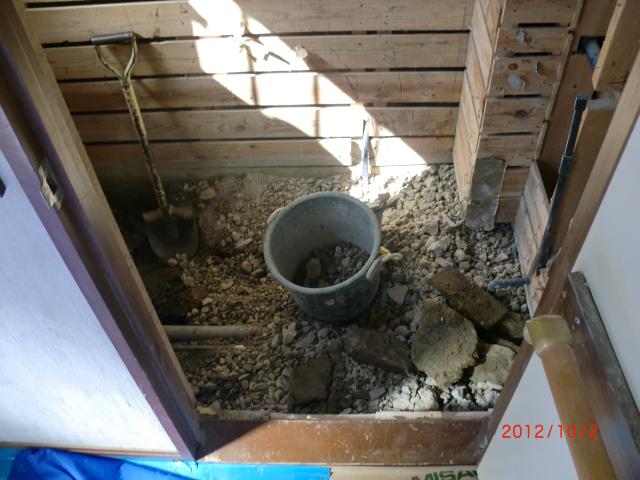 トイレの改修に伴い、トイレ床を解体、バリアフリーに