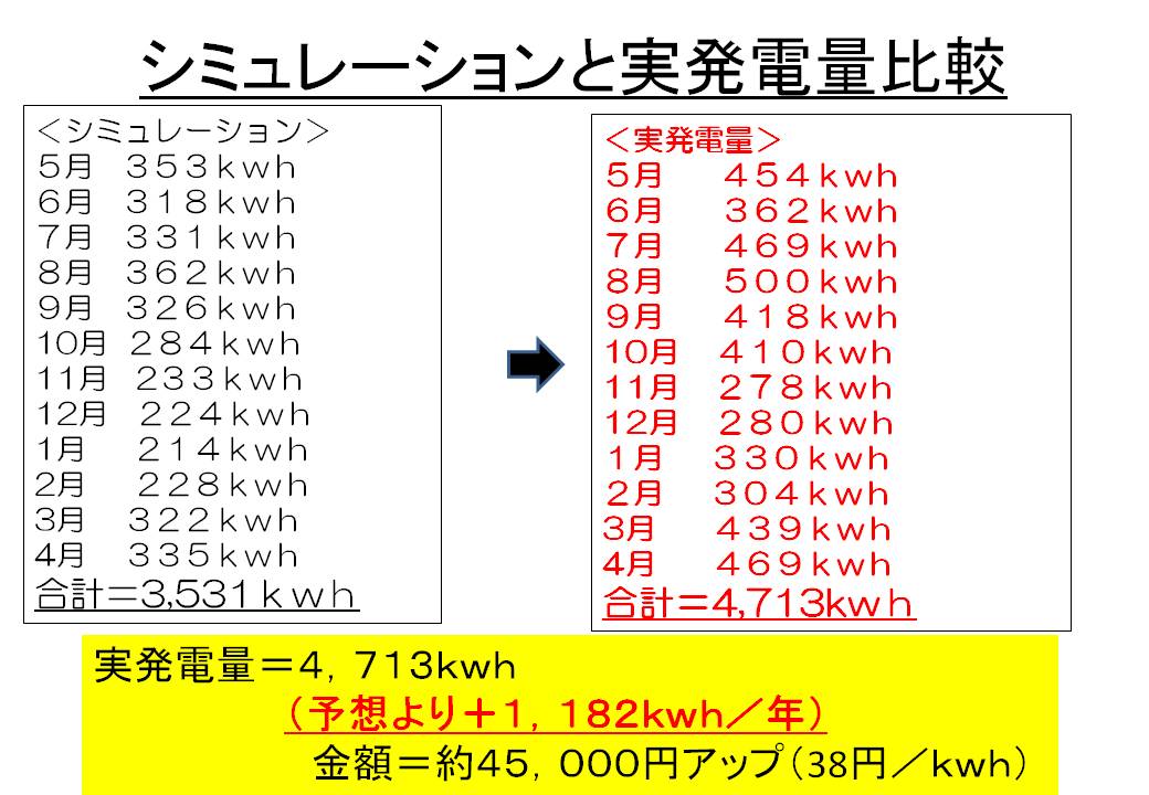 実際の発電量= 4,713kwh/年(1kwパネル当たり=1496kwh)