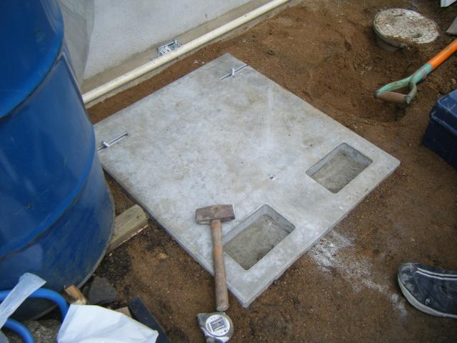 しっかり、水平・地固めをしてから据え付けます。この時、適当にしてみたりあわててするとエコキュート本体を乗せお湯を入れたときに傾いたりしたら大変です。