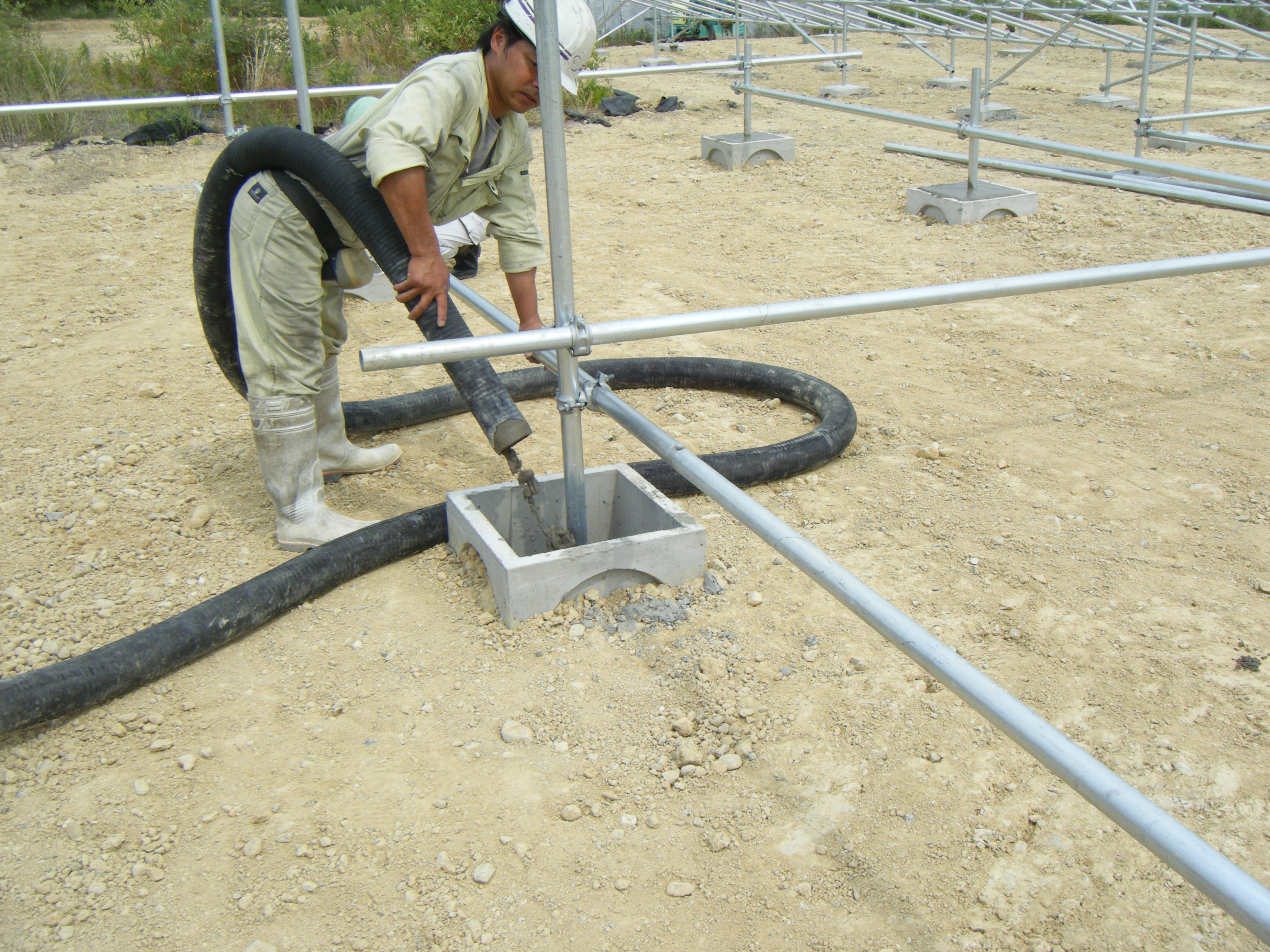電柱からの引き込みポールの基礎コンクリートも一緒に打ちました。