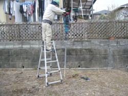 単管杭を打ち付け、引っ張り強度を測ります。