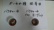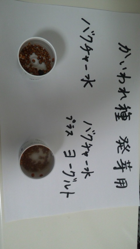 “炭バクチャーの入れた水”と、“炭バクチャープラスヨーグルトの水”と、普通の水で、成長を比べます。