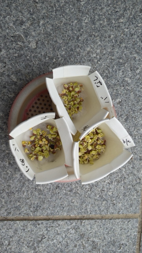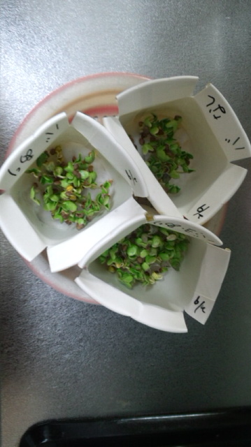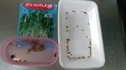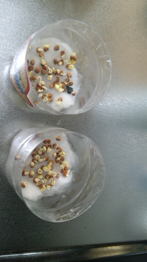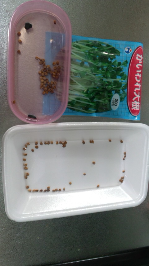 新しくカイワレの種を50個づつ仕込みました。どうなるでしょう。