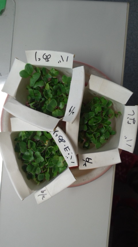 先日、カビかも?!と報告した、カイワレさんたち。ちゃんと元気に育ってます。家で様子を