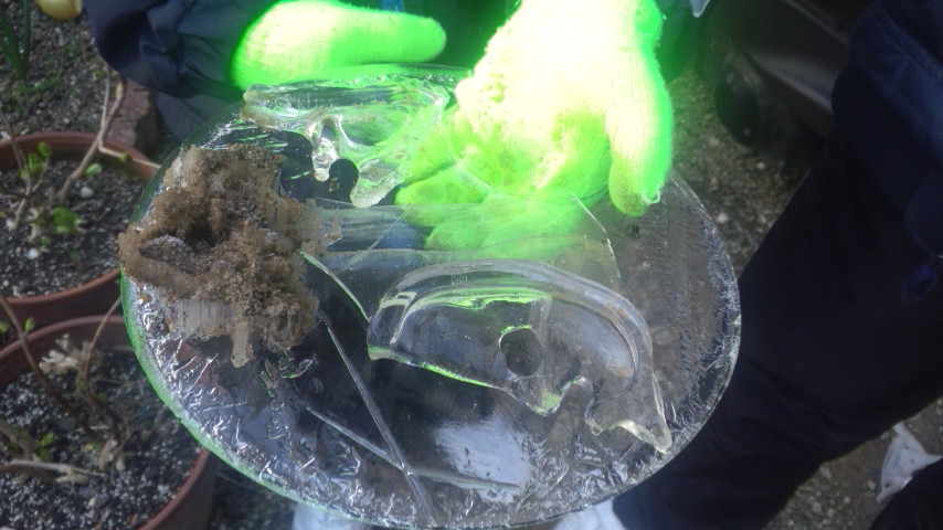 わが家の息子たちが朝から霜柱と氷で遊んでました(^^)今も三月とは思えないくらい吹雪いています。