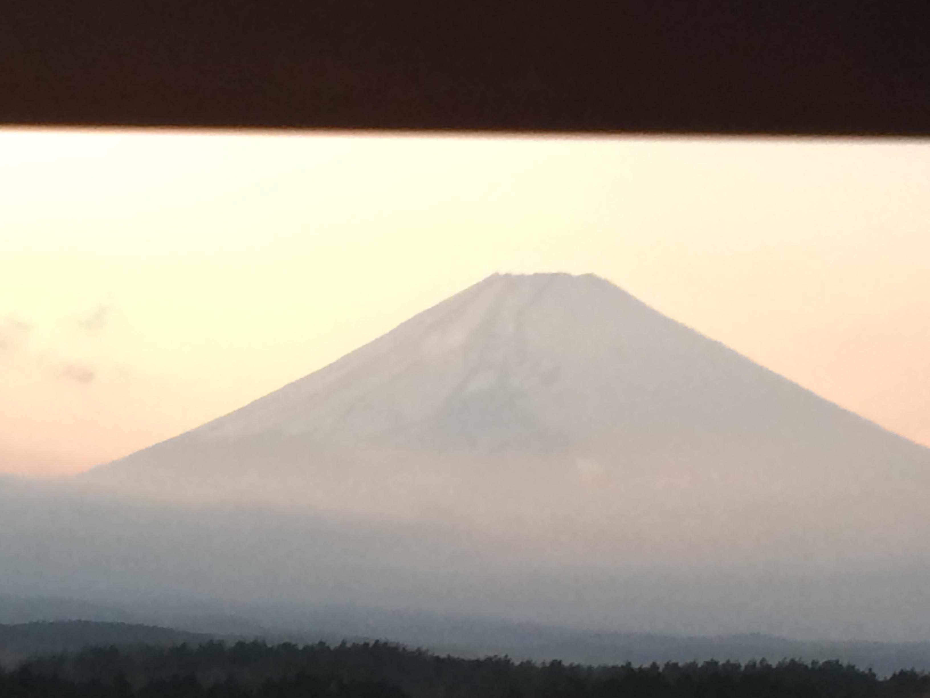 春休みに全国大会があり、その帰り道、バスの中から幻想的な富士山が見れました。