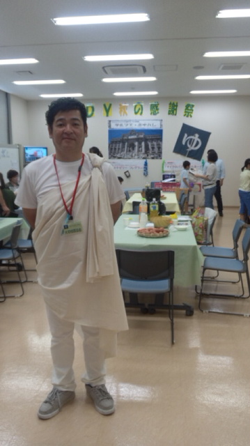 坂も古代ローマ人衣装で、お出迎えしました。似合っています(^^)