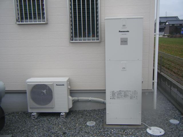 配管施工中の写真があまり取れなったため、いきなりエコキュート設置完了です。