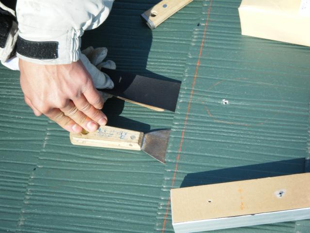 三菱はコーキングもゴムアス系の特殊なコーキングです。