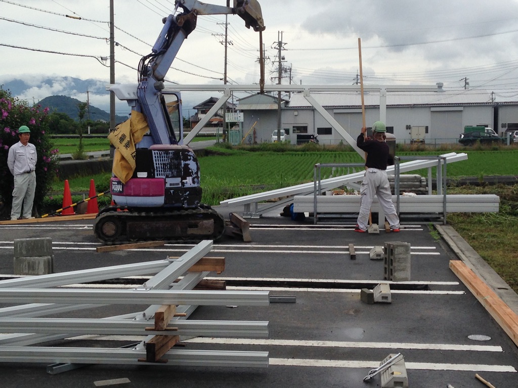 昨日から、太陽光付カーポートを設置しています。